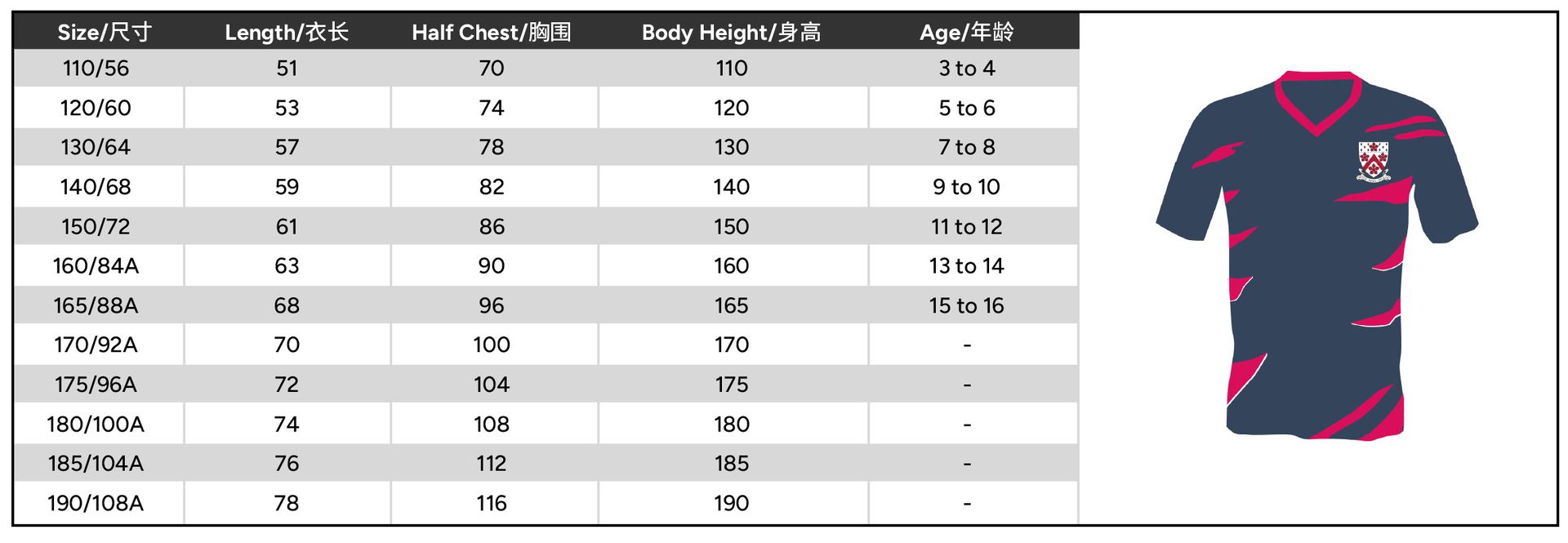 | Size | 110 or 120 or 130 or 140 or 150 or 160 or 165 or 170 or 175 or 180 or 185 or 190 |