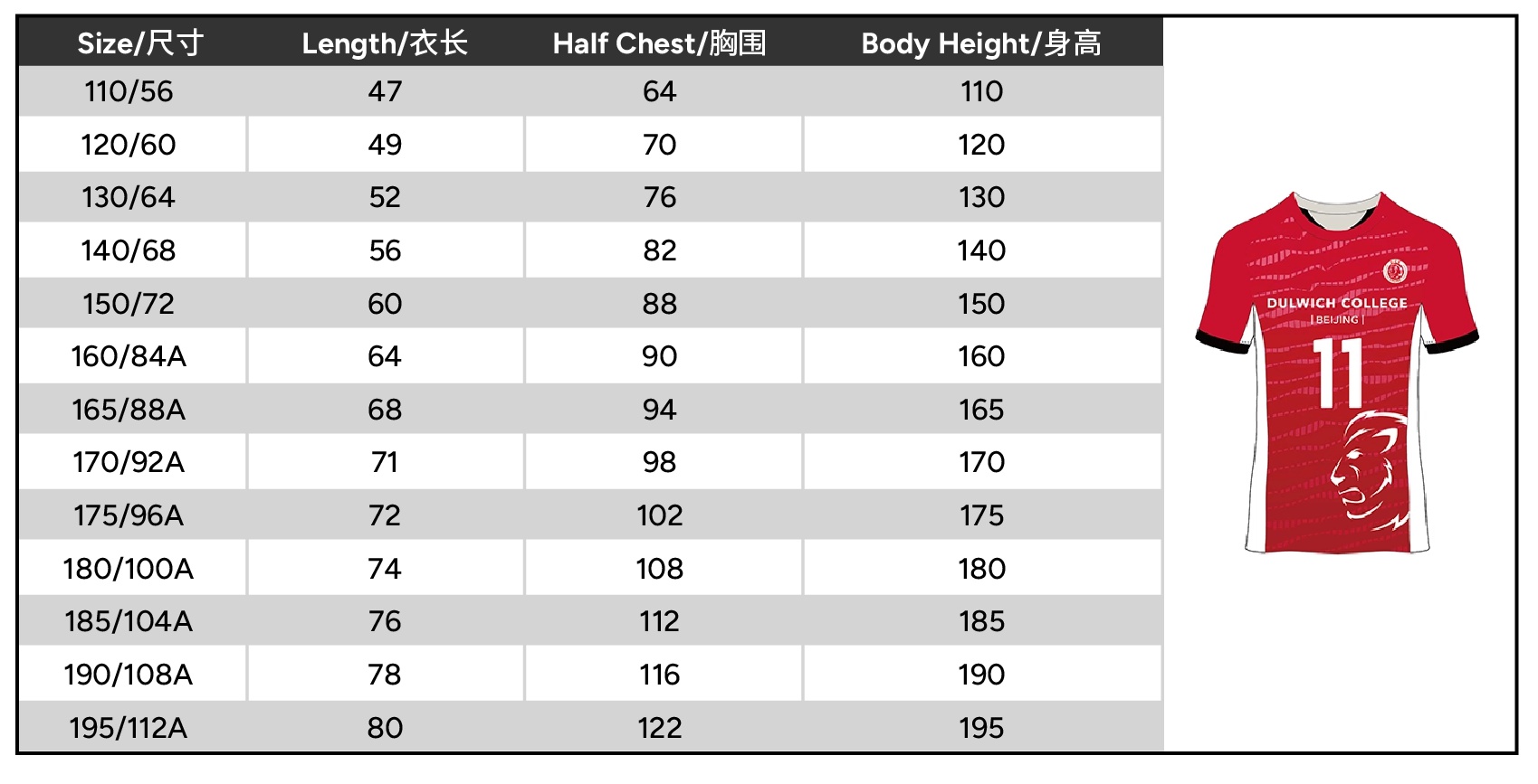 | Size | 110 or 120 or 130 or 140 or 150 or 160 or 165 or 170 or 175 or 180 or 185 or 190 or 195 |